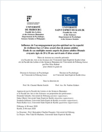 Influence de l'accompagnement psycho-spirituel sur la capacité de résilience face à l'abus sexuel chez de jeunes adultes : Etude de cas multiples menée auprès de jeunes adultes libanais croyants âgés de 20 à 30 ans survivants d'abus sexuel