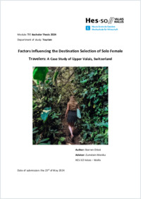 The tourism industry has seen a notable rise in solo female travelers, driven by evolving lifestyles, increased flexibility in work setups, and a growing demand for personalized travel experiences (Digital Journal, 2023). This study investigates the factors influencing destination selection among solo female travelers, focusing specifically on Upper Valais, Switzerland. The objective is to identify critical determinants and provide actionable recommendations for the local tourism industry to better cater to this demographic. Given the Upper Valais' reputation for safety and scenic landscapes, it holds significant potential as a destination for solo female travelers.
