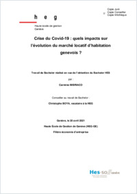 French Cela fait maintenant plus d’un an que le Conseil Fédéral annonçait l’état d’urgence en Suisse et imposait un semi-confinement à tous ses habitants. La pandémie de Covid-19 a bouleversé négativement de nombreux secteurs de l’économie suisse et celui du logement n’y a malheureusement pas échappé. L’objectif de ce travail consiste à identifier les impacts causés par le Covid-19 sur le marché du logement genevois et particulièrement celui relatif au marché locatif d’habitation. La période d’analyse sera basée sur l’année 2020, durant laquelle la crise a majoritairement frappé. L’année 2019 sera également prise en compte dans l’analyse afin de déterminer l’évolution de ce marché avec plus de précision. A la suite de cette analyse, j’identifierais les impacts les plus importants et leurs éventuelles conséquences futures sur le marché. C’est dans cette optique que j’ai également interrogé des professionnels de l’immobilier afin d’avoir des éléments de réponse supplémentaires et tout aussi pertinents que ceux basés sur les études statistiques menées sur le sujet. Afin de fournir une analyse pertinente, j’ai consulté, entre autres, de nombreuses études menées par certaines banques suisses et cabinets d’expertise immobilière dans le but de récolter des données sûres.