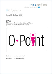 French Du fait de leur condition d'existence particulière, les personnes souffrant d'un handicap doivent malheureusement trop souvent combattre les préjugés et les limitations qui leurs sont imposées par une société de plus en plus pressée, avide de rentabilité et régie par des standards de perfection. Pire, il n'est pas rare qu'une précarité affective ou financière s'installe durablement dans leur quotidien, rendant leur intégration sociale d'autant plus ardue. Toutefois, quoi de plus légitime qu'avoir la volonté de s'intégrer à cette société et vivre le plus normalement possible ? De fonder une famille, se former et de s'épanouir professionnellement ? D'expérimenter, de se divertir et de rechercher l'autonomie ? Les enjeux soulevés se posent comme une véritable question sociale, puissamment complexe et difficile à résoudre sur le court terme. Au-delà des moyens financiers dédiés à la recherche médicale ou technique, ce sont les mentalités qui sont amenées à évoluer. Par comparaison, la Suisse offre un contexte particulièrement favorable en matière d'inclusion sociale. Grâce à sa prospérité économique et politique, elle offre un encadrement et des prestations de bonnes qualités, bien qu'évidemment toujours perfectibles. C'est sur cette toile de fond que la plateforme web O-Point a vu le jour ; projet d'abord porté par Madame France Santi, spécialiste du "facile à lire", son but initial s'appuyait sur des spéculations quant aux besoins des futurs utilisateurs. Un parcours de recherche a permis d'affiner les objectifs du site et de les convertir en fonctionnalités. Visant à l'origine de favoriser les rencontres amicales ou amoureuses entre personnes souffrant de handicap, l'hypothèse a évolué au fil de l'analyse pour aboutir à des besoins concrets, exprimés par des personnes directement concernées.